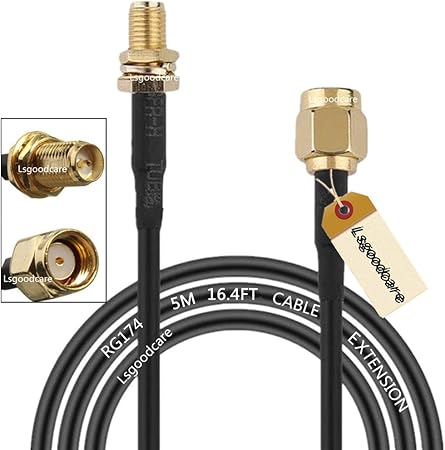 Amazon.com: Lsgoodcare 16.4FT RG174 RP-SMA Male to Female WiFi Antenna Connector Extension Cable Black, Low Loss Antenna Lead Extender Pigtail Cord Compatible for Wireless Router LAN WAN: Computers & Accessories