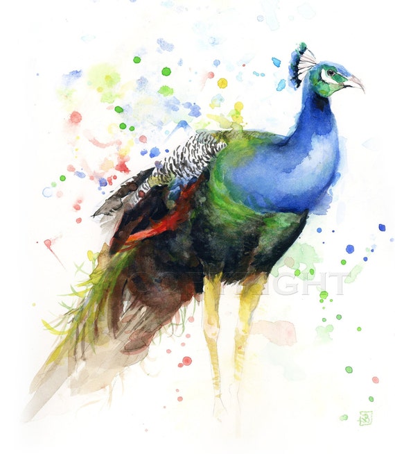 PEACOCK Watercolor Print Peacock Painting Bird Art Colorful | Etsy