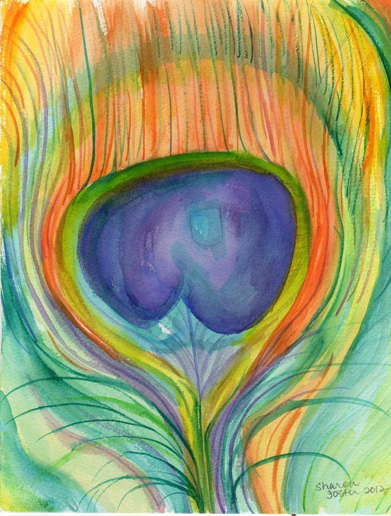 Peacock feather watercolor painting original colorful peacock | Etsy