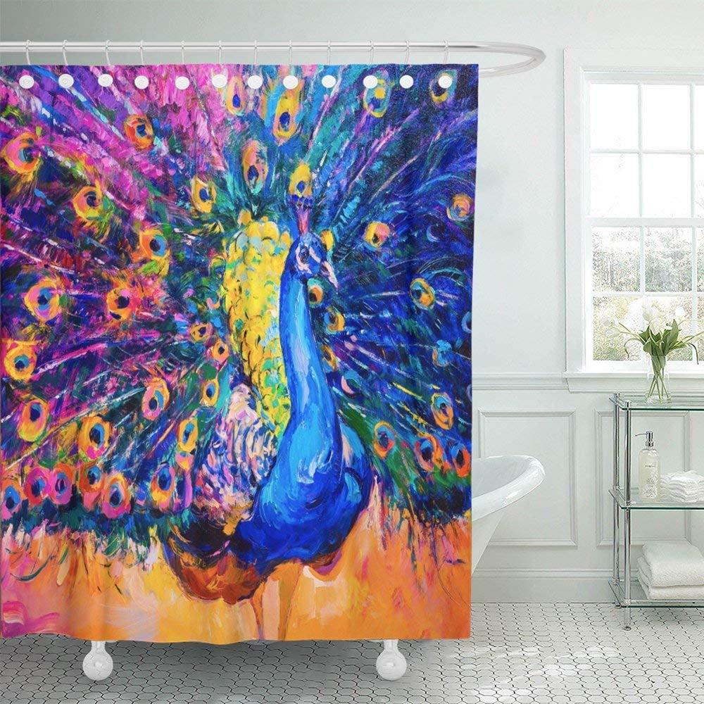 BPBOP Artist Original Oil Painting on Canvas Colorful Peacock Modern Classic Watercolor Spring Orchid Shower Curtain 66x72 inch - Walmart.com - Walmart.com