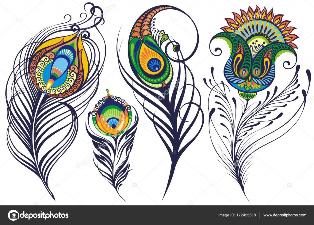 Arts painted a colorful peacock feathers on a white background stained watercolor paint. — Stock Vector © Ksyshakiss #172455618